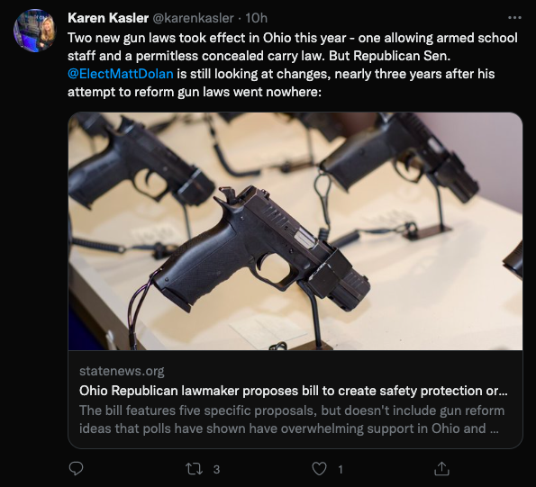 WEWS TV Cleveland: “Ohio GOP lawmaker introduces gun safety bill; includes red flag law, enhanced background checks”