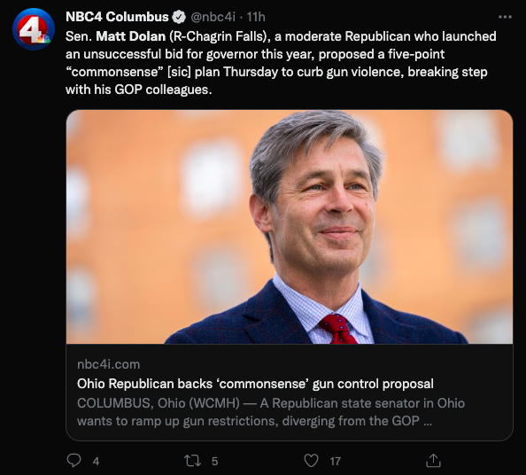 NBC4 Columbus: “Ohio Republican backs ‘commonsense’ gun control proposal”